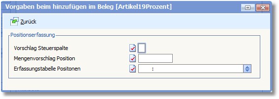 Hier können Sie die Steuerspalte in der Positionserfassung mit einem Wert vorbelegen.