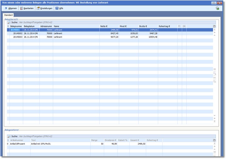 Die Auswahltabelle "...einzelne/alle Positionen übernehmen"