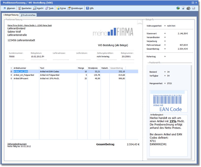 Navigation:  Warenwirtschaft > Belegbearbeitung > Einkauf/Wareneingang >