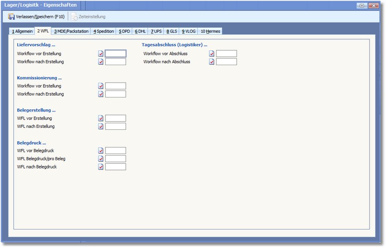 << Hier KLicken um eine Inhaltsübersicht anzuzeigen >> Navigation: Warenwirtschaft > Lagerverwaltung > Lager-/Logistikcenter > Liefersystem - Eigenschaften > Die Karteikarte "WFL" |