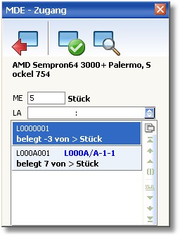 << Hier KLicken um eine Inhaltsübersicht anzuzeigen >> Navigation: Warenwirtschaft > Lagerverwaltung > Lager-/Logistikcenter > Mobile Datenerfassung (MDE) > LagZu - Lagerzugang |